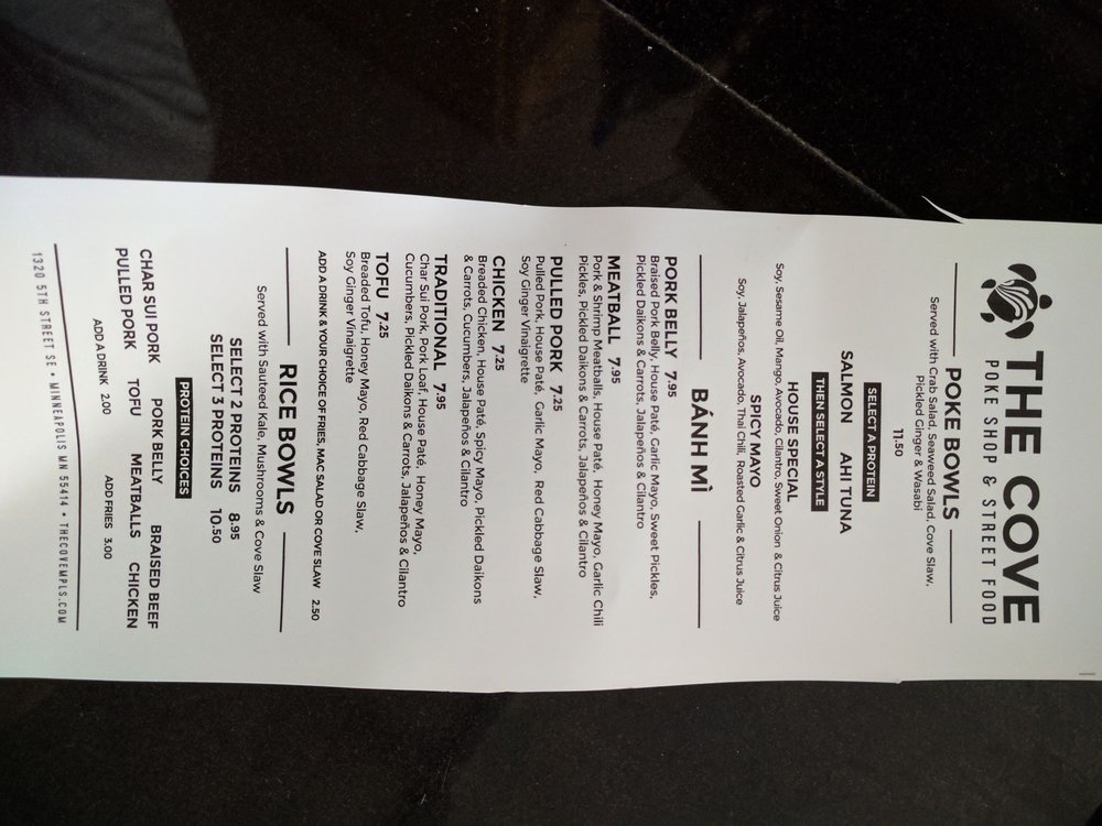 Introducing the menu at The Cove Minneapolis is an exhilarating culinary journey that fuses diverse flavors into delicious comfort food. Located in Dinkytown, this gem specializes in innovative choices like sushirritos, which feature spicy salmon or tuna wrapped in seaweed with fresh veggies and crispy fried onions. The flavors are bold yet balanced, making each bite a delight.